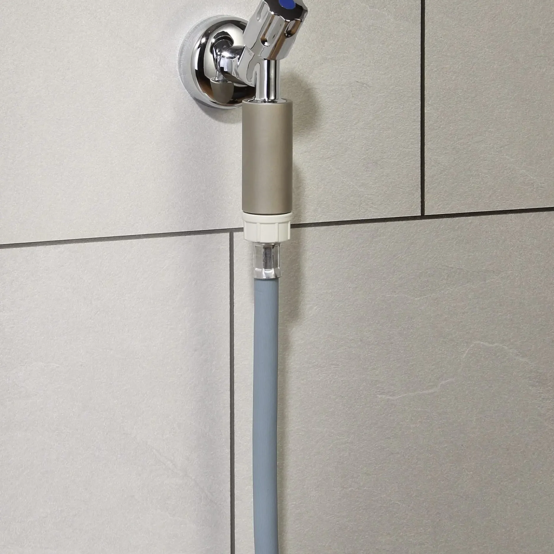 - Connects inline on the washing machine cold water inlet hose — fits any standard 3/4" BSP washing machine inlet