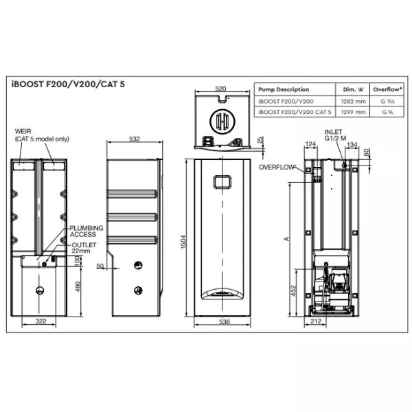 | Water Tank Capacity | Nominal 220 litres; Usable approx. 200 litres |