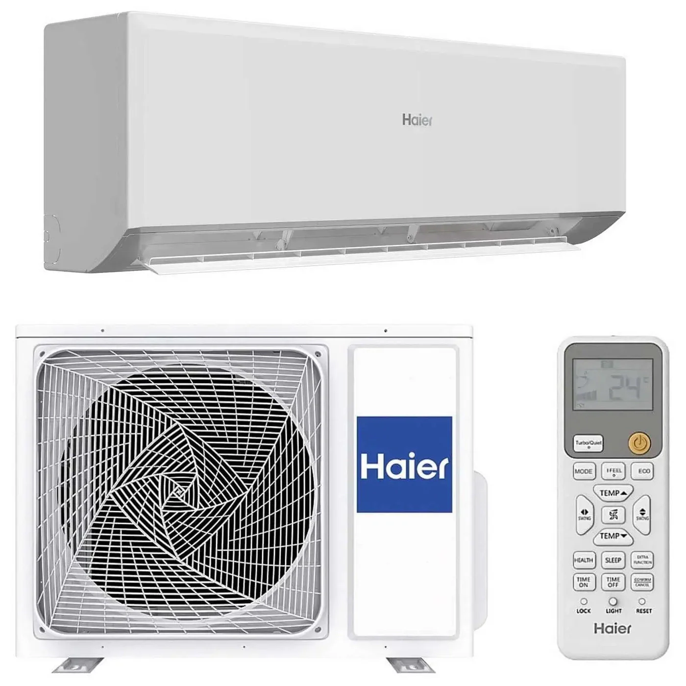 The Haier Revive Plus 3.5 kW single split system (indoor: AS35RBAHRA-4 / outdoor: 1U35YESFRA-4) is a wall-mounted reversible air-to-air heat pump designed for medium-sized rooms — living rooms, larger bedrooms and open-plan areas up to approximately 25–35 m². It delivers 3.2 kW nominal cooling and 3.9 kW nominal heating via a DC rotary inverter compressor, with a SEER of 6.1 (A++) and SCOP of 4.0 (A+). The ultra-quiet indoor unit operates at just 18 dB(A) in quiet mode — ideal for bedrooms and living spaces. Every Revive Plus includes 56°C Steri-Clean bactericidal self-sanitising, 3-Level ECO energy saving, Coanda Plus 3D airflow, iFeel remote sensing, and built-in Wi-Fi for Haier hOn app control.