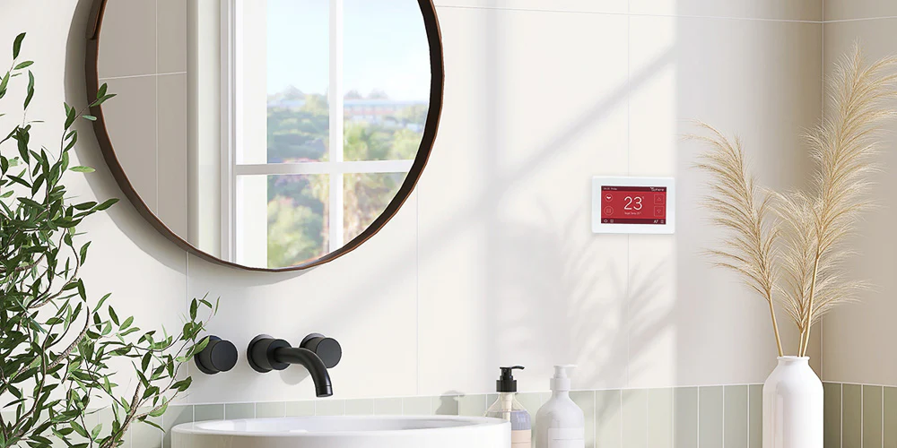 Combining two independent heating controls in one stylish, programmable unit, the ThermoSphere Dual Control Thermostat provides total convenience and energy savings in luxury bathrooms and heated floor installations. Its advanced features like adaptive start and open window sensing make it a smart choice for efficient heating management tailored to your lifestyle.